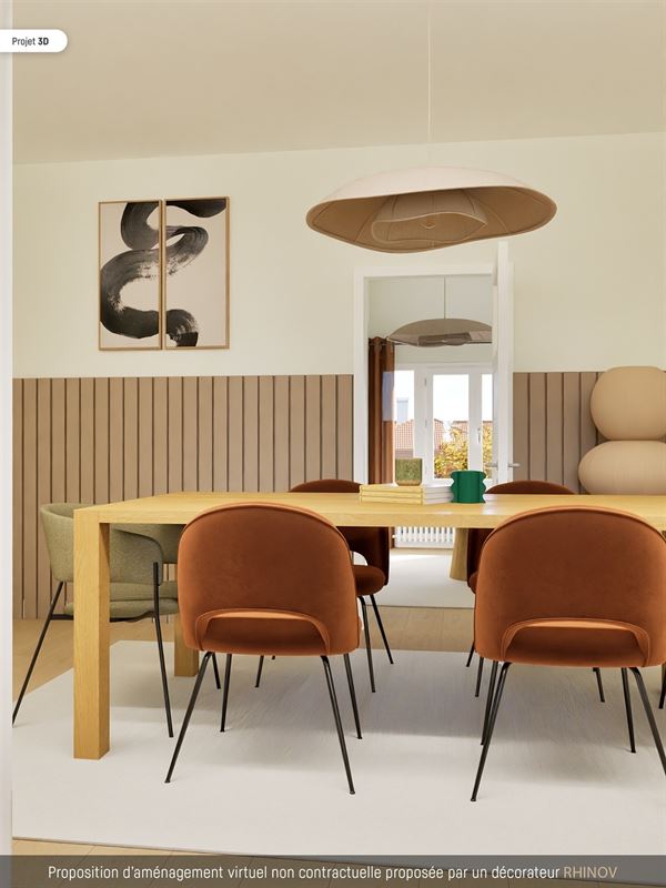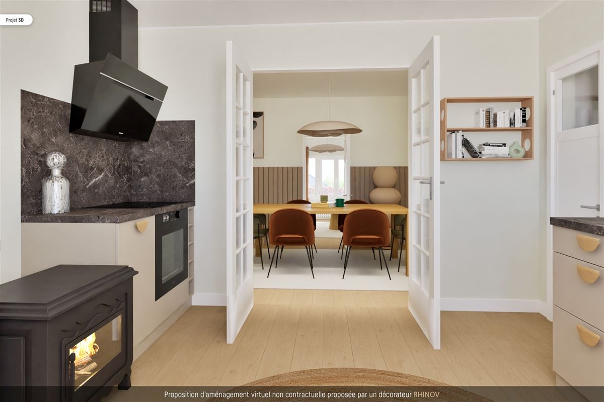 REZ : hall d'entrée avec WC séparé, desservant un séjour prolongé par une salle à manger et une cuisine semi-équipée (évier 1 + 1/2, four, hotte, taque).